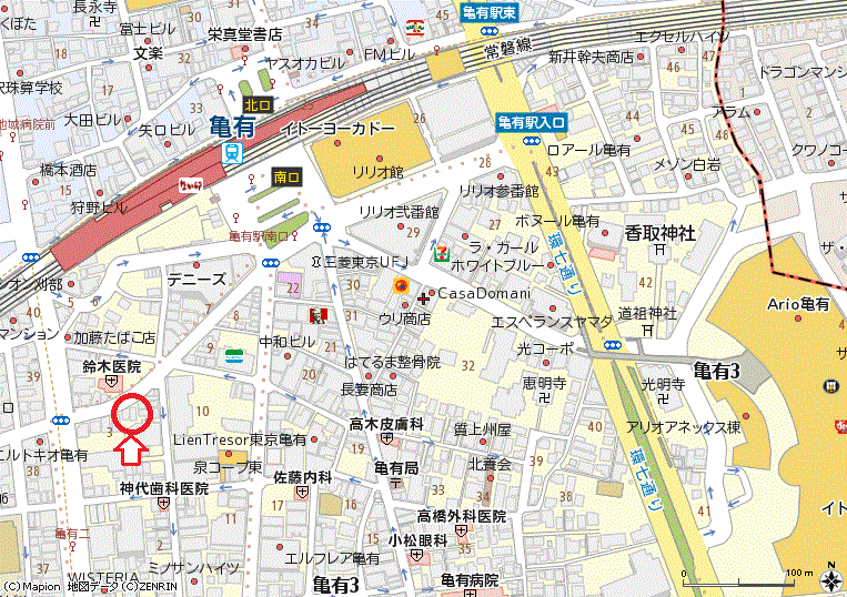 JR常磐線(千代田線直通)亀有駅南口を出て、右斜め前方へ約3分。